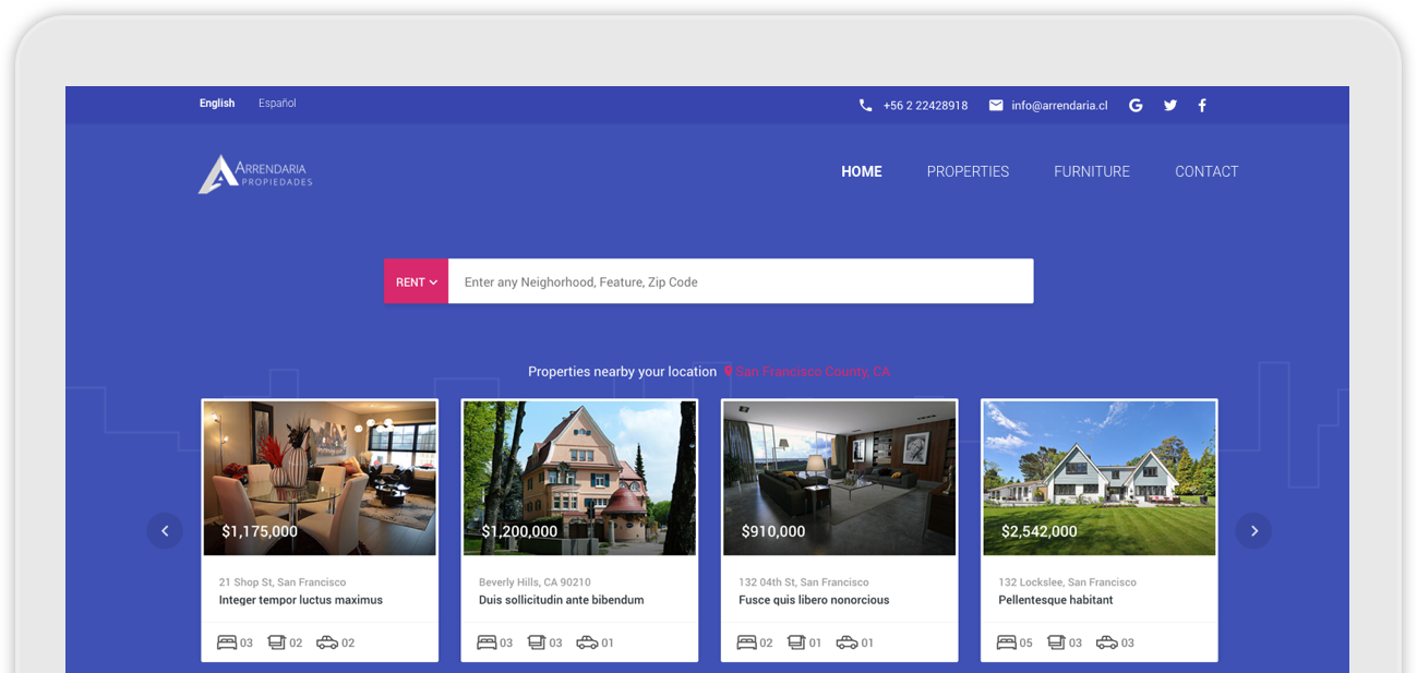 Focused in the Oriente sector of Santiago, Arrendaria is characterized by the personalization of the services provided, strengthening bonds of trust with its Clients and allowing the future continuity of the established relationship.