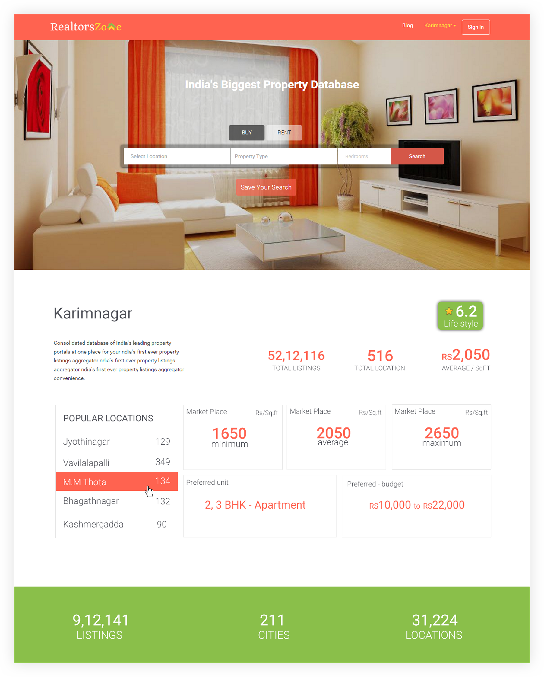 With the app, anyone can list their properties for sale or lease across India. Challenging the geographical, cultural aspects of the target audiance RealtosZone was successful in listing 1M Properties with 7,000 users in the first 30days of release.